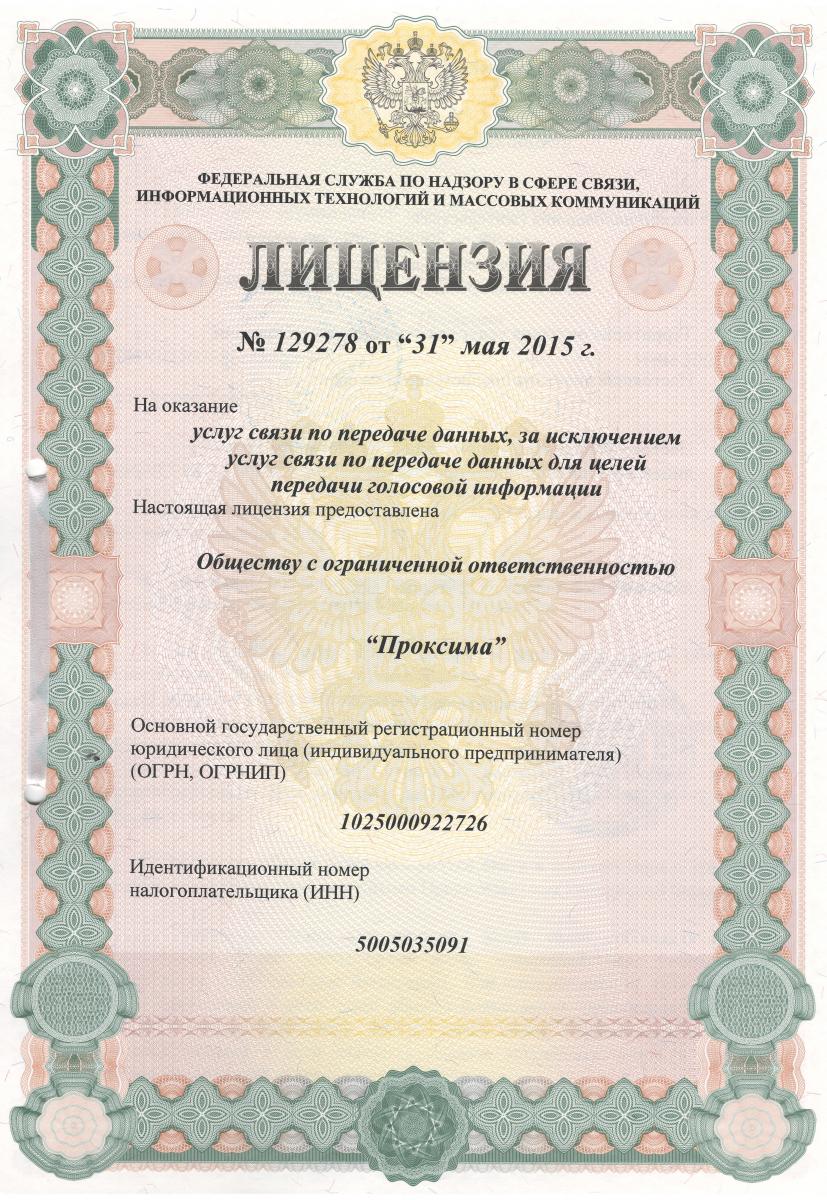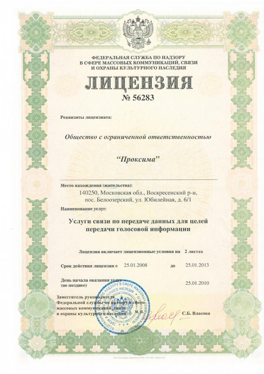 Основные лицензии для осуществления Обществом с ограниченной ответственностью "Проксима" деятельности в области связи, выданные федеральной службой по надзору в сфере связи.